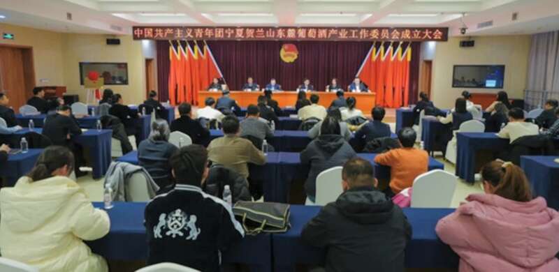 12月12日,宁夏银川,宁夏贺兰山东麓葡萄酒产业园区团工委成立大会现场。(宁夏贺兰山东麓葡萄酒产业园区管委会供图)