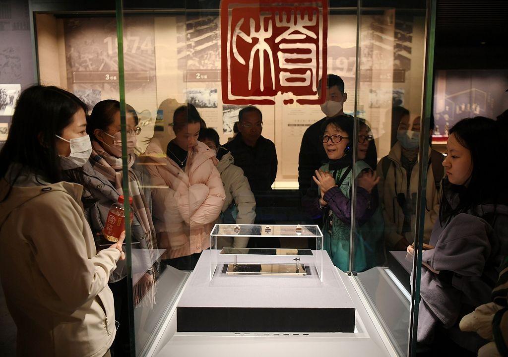 2025年12月17日,安徽合肥,观众在安徽博物院蜀山馆(新馆)参观“马王堆——西汉·一个家族的‘永生之梦’”特展,吸引不少游客前来参观。