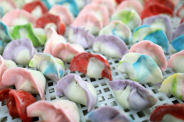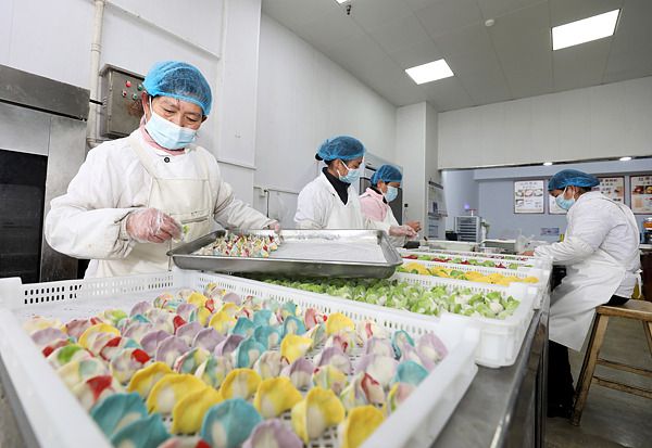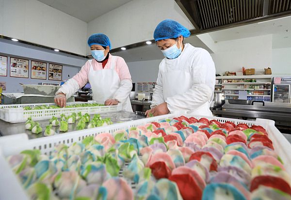 安徽淮北:面点工加工彩色饺子 供应冬至节日市场