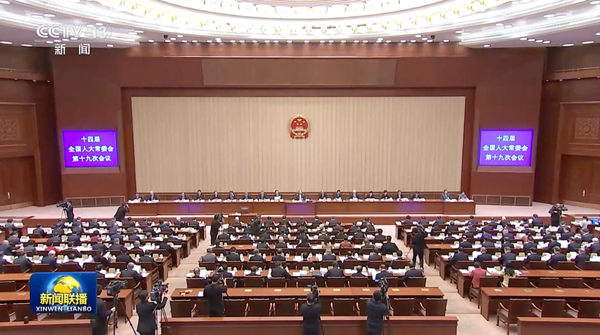 十四届全国人大常委会第十九次会议12月22日至27日在北京举行。12月22日上午,会议举行第一次全体会议。