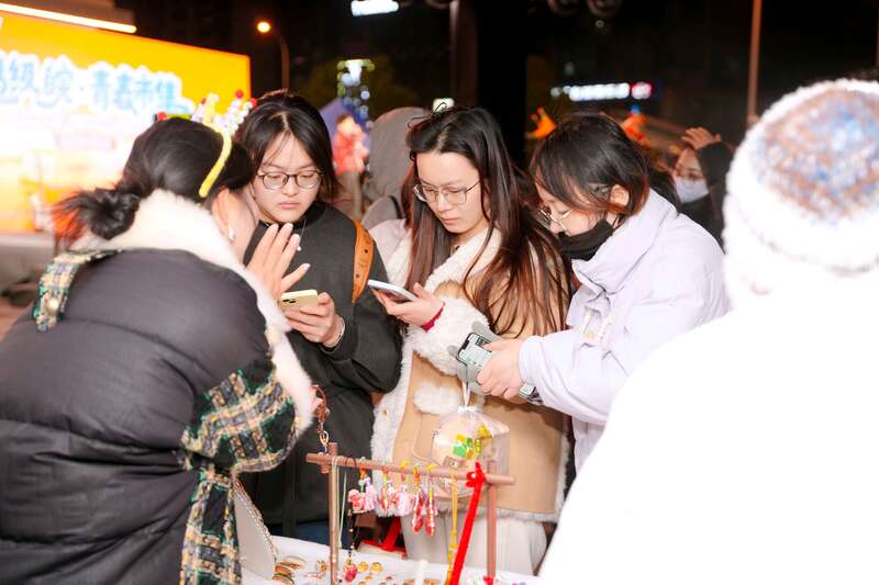 “创艺风华”展示区笔墨飘香,青年书法家驻场开展“万福齐送”活动,市民挥毫泼墨书写新年祝福;科技科普互动区引入科大讯飞等科创资源,AI体验、机器人展示趣味十足,彰显科技赋能生活理念;潮流生活聚合区的原创手作琳琅满目;创享未来服务区内,创业政策咨询、就业岗位发布与青年创业者沙龙火热开展,为追梦青年送上“新年礼包”;“以书‘椒’友”公益互动区温情满满,爱心与暖意在市集间流淌。