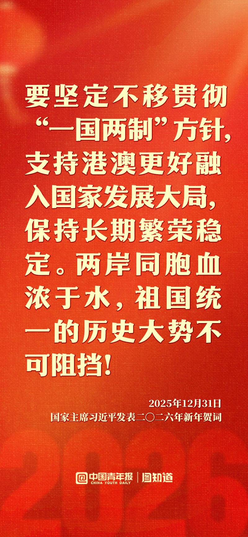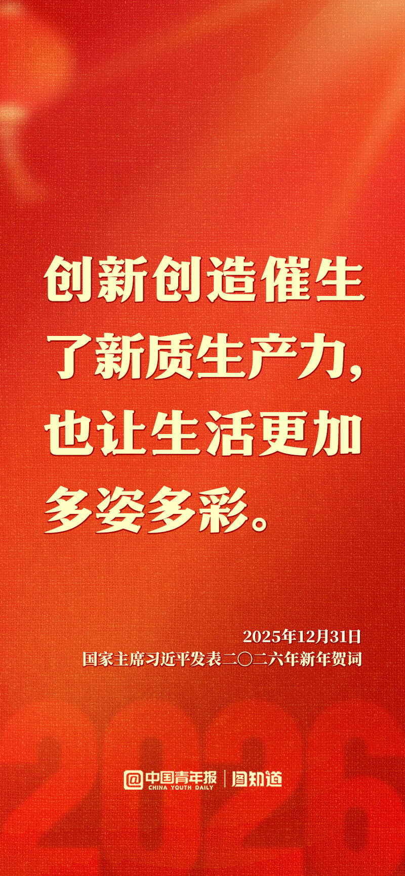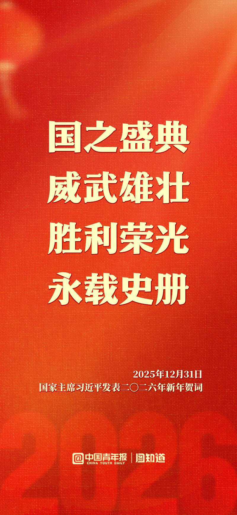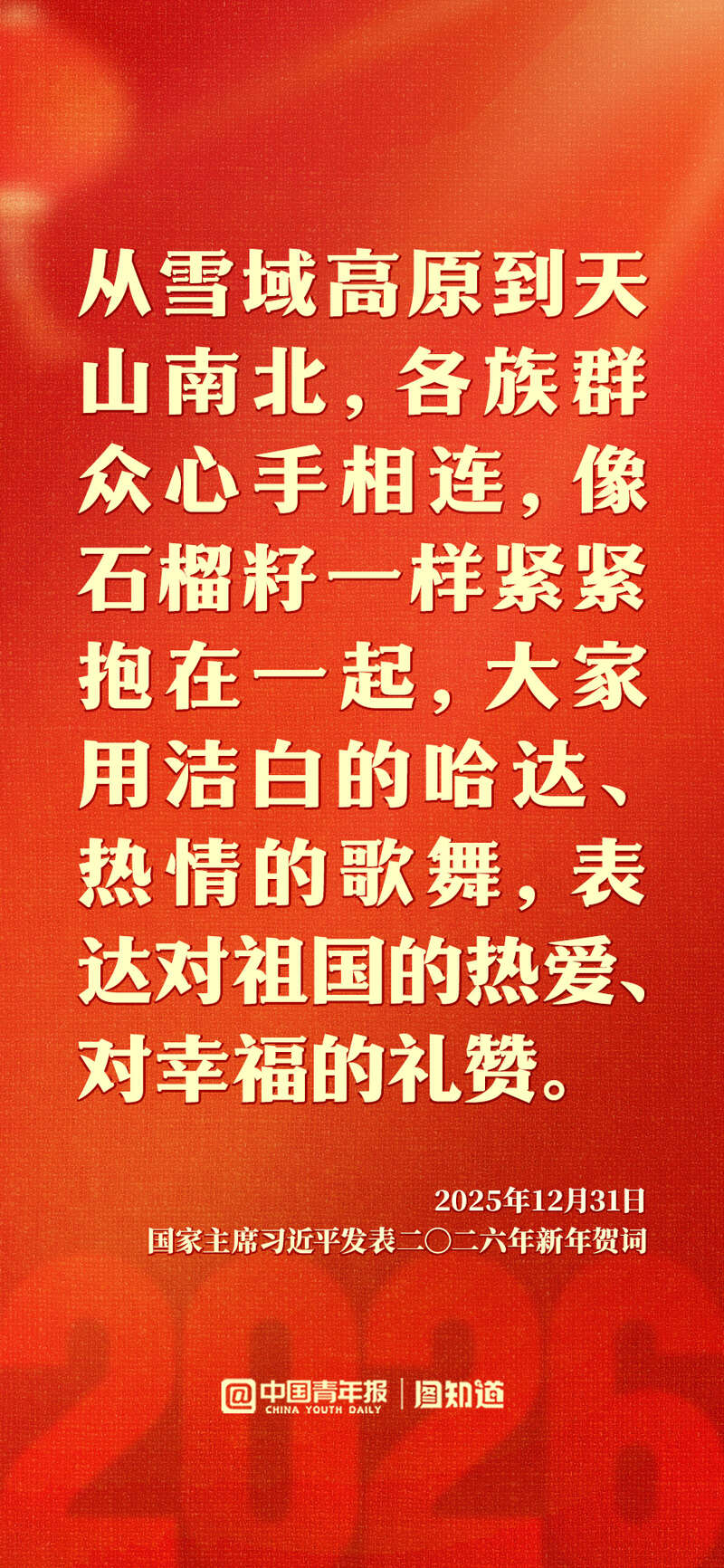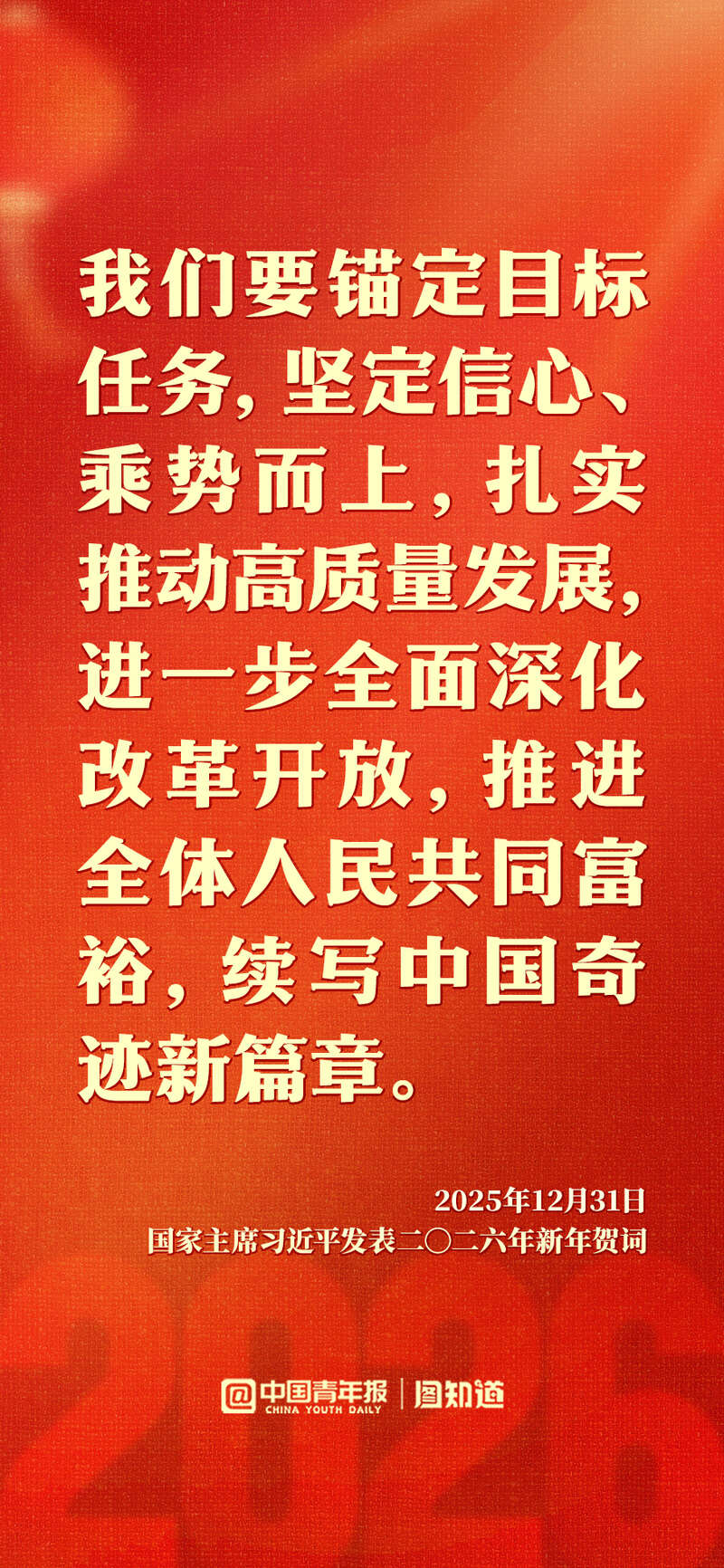 新年前夕,国家主席习近平发表二〇二六年新年贺词。“每个‘小家’热气腾腾,中国这个‘大家’就蒸蒸日上。”家国共此时,让我们带着这份温暖与力量,携手奔赴2026。