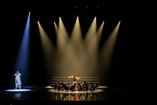 2025年12月27日,北京大学百周年纪念讲堂,2025“非遗焕新”青年文化主题活动现场,新兴领域青年代表表演节目《搬梦·砺行当歌》。中青报·中青网记者 李隽辉/摄