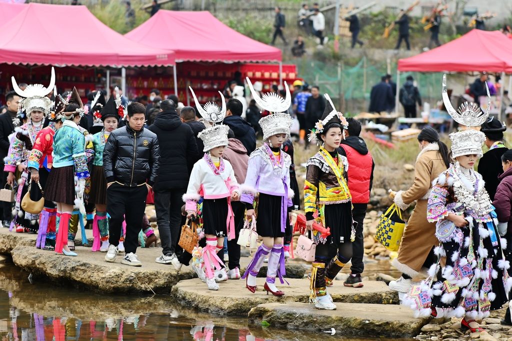 2026年1月5日,广西融水,各民族同胞身着盛装参加传统的芦笙“砍旗节”。