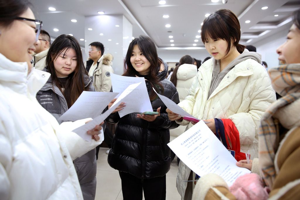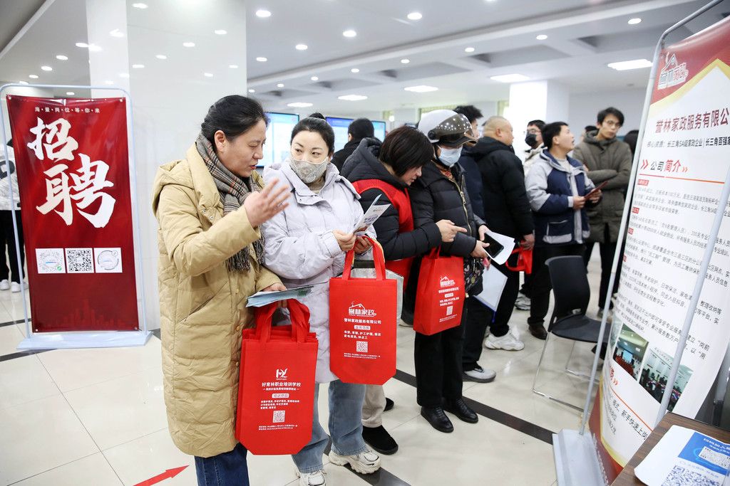 2026年1月6日,江苏连云港,求职者在招聘会上了解岗位信息。