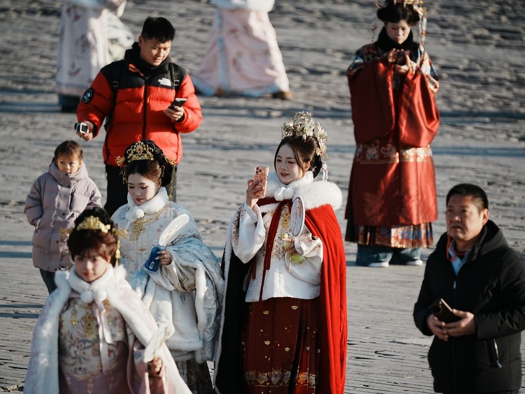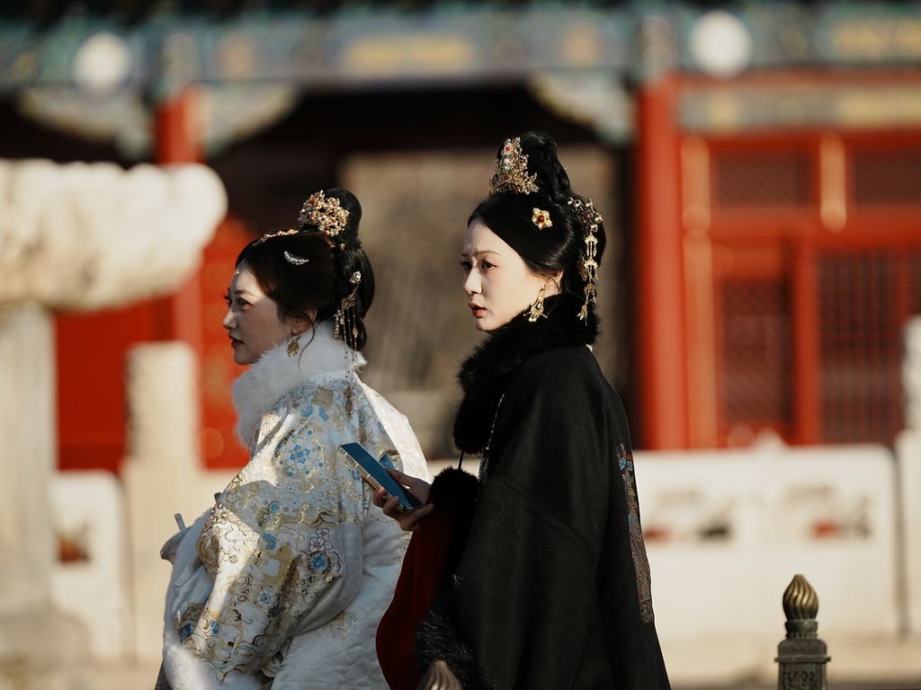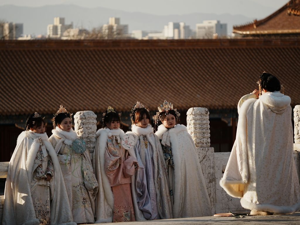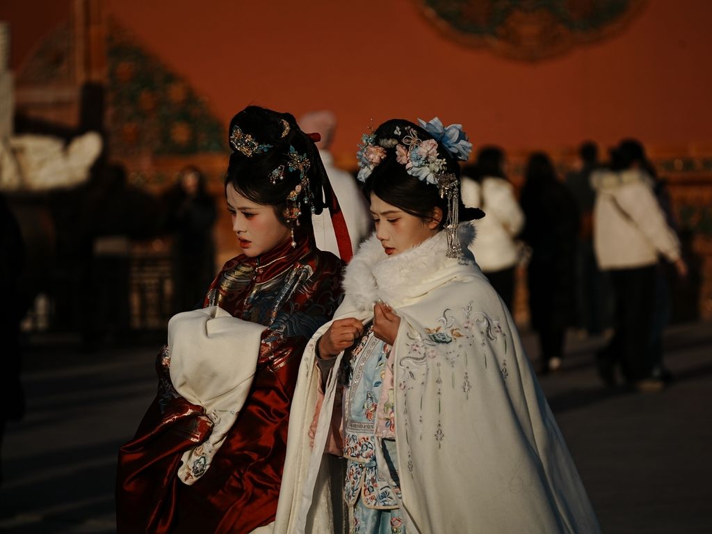 2026年1月8日,北京,游客身穿汉服游览故宫。