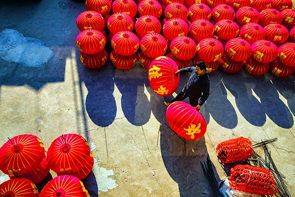 2026年1月7日,河北藁城屯头村,村民制作宫灯。该村被誉为“中国宫灯第一村”,其灯笼制造技艺是省级非物质文化遗产。