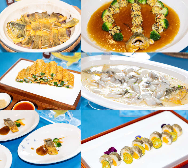 这桌“黄鱼盛宴”由浙江海洋大学与舟山市机关事务管理局特级厨师郭金伟大师团队联合打造。从经典传统的“雪菜黄鱼”“红烧黄鱼”,到新潮创意的“黑椒香煎黄鱼”“绣球蒸黄鱼”,再到融合东西南北风味的“琥珀黄鱼冻”“沸腾黄鱼片”,每一道菜都凝聚着烹饪智慧与风味创新。
