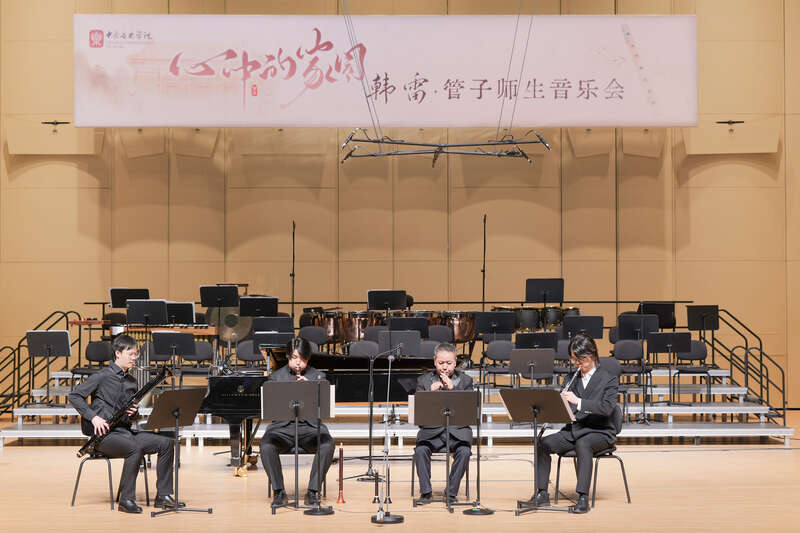 人才培养是音乐会的另一核心主题。韩雷坚持在少年宫开设义务启蒙班,扩大管子的群众基础。本次音乐会上,他与4位学生同台,年龄跨度从初中到大学,展现了传承的接力。韩雷说,作为一名演奏者和教师,他希望用多元的跨界尝试,为管子开拓更多可能性。“管子可以悲,也可以欢;可以传统,也可以现代;可以很中国,也可以很世界。”