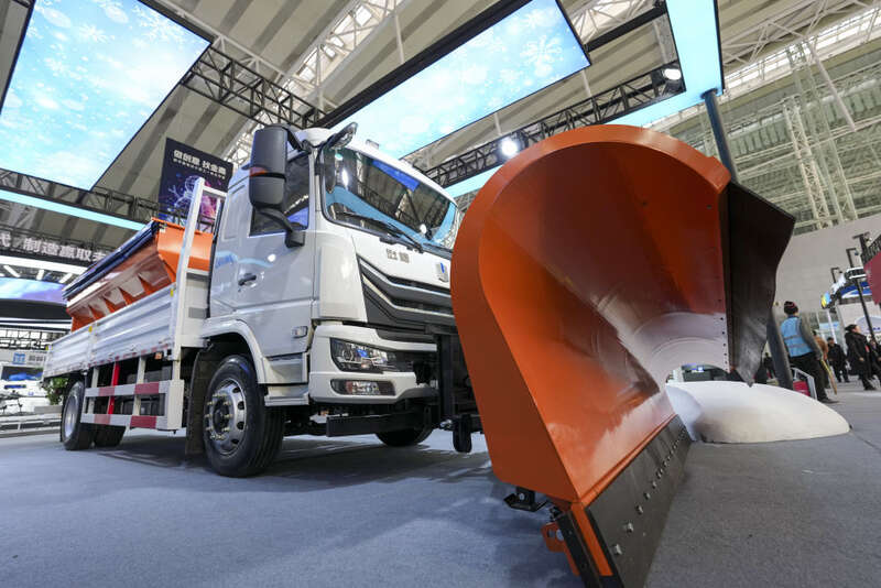 这是2026年1月6日在2026哈尔滨国际冰雪经济博览会展会拍摄的大型清雪设备展品。