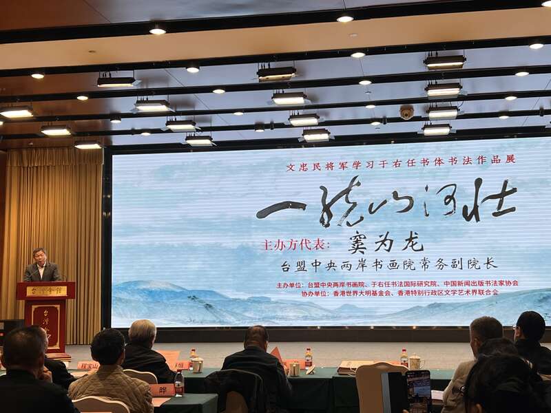 中国青年报客户端讯(中青报·中青网记者 赵婷婷)1月15日下午,“一统山河壮——文忠民将军学习于右任书体书法作品展”在北京台湾会馆开幕。本次展览由台盟中央两岸书画院联合多家单位主办,香港特别行政区文学艺术界联合会等机构协办。展览旨在通过展示文忠民将军研习书法家于右任“标准草书”的艺术成果,促进两岸文化艺术交流。