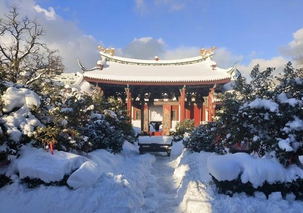毛狮介绍,晚清时候,闽商从泉州取材雕刻,用船运到烟台组装。“保留了家乡建筑的原汁原味,唯一的区别是瓦片换成了绿琉璃瓦,这算是南北结合了。因为闽南红板瓦肯定承受不了雪的重压,而且绿瓦等级也较高。据说这种建筑方式在当时先民下南洋时并不少见。”
