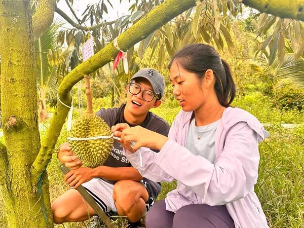 从一名青涩的青年学生成长为对榴莲习性如数家珍的“土专家”,于天祥的皮肤晒黑了,笑容却更爽朗了。他笑称,“哪里有需要,哪里就有科技小院的师生们。”