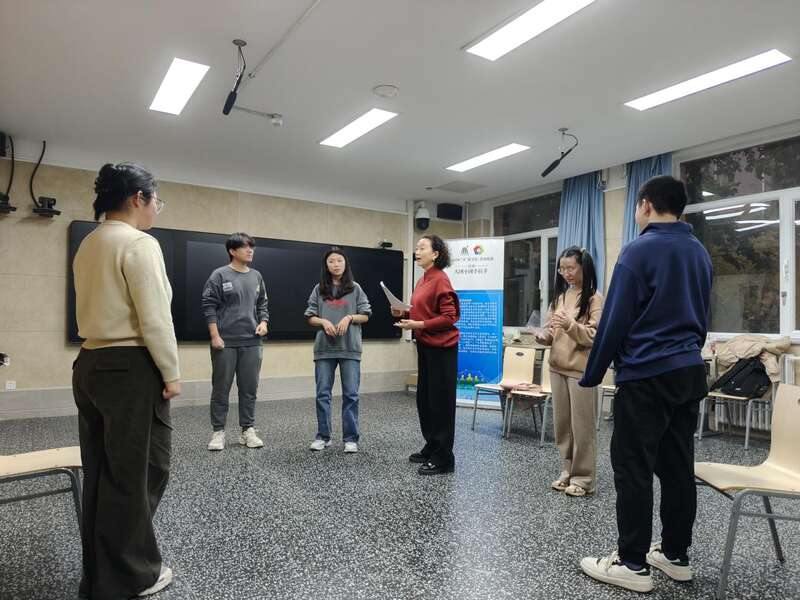 在北京工商大学,陈虹菁以经典剧目《龙须沟》选段为教学核心,为9名学员开展专项培训。从唱腔韵律到身段表演,陈虹菁系统传授技艺,更引导学生体悟老舍笔下的时代背景与人文关怀。