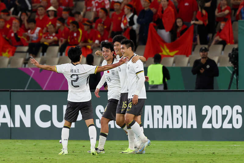 当地时间2026年1月20日,沙特阿拉伯,2026U23亚洲杯半决赛中,中国队球员庆祝进球。视觉中国供图