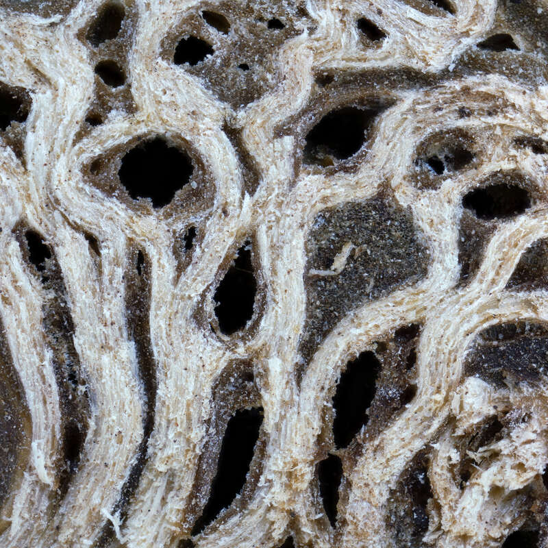 得益于显微摄影堆栈技术的加持,那些依附于药材表面、被药效价值遮蔽的纹路,成为这组组照的绝对主角。镜头之下,青风藤的蜿蜒导管似篆书笔意,勾勒出草木生命的流动轨迹;虎杖的斑驳切面如古画绢帛上的皴法,藏匿着岁月沉淀的色韵;草豆蔻的褶皱则像山水画中的层叠峰峦,在微观尺度重现“平远”“高远”的构图哲学。
