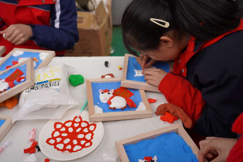 72份新年礼包、15份“运动梦想包”送到孩子们手中。在新春游园活动,操场内设置的糖画、拓印、春联、剪纸、黏土DIY五个点位前,孩子们有序排队参加体验。