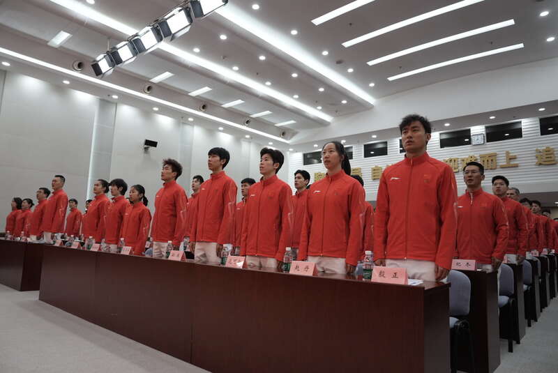 参赛队工作人员共有128人,包括领队、副领队23人,教练员58人,管理、翻译11人,医务康复、器材保障、科研等辅助工作人员36人,其中外籍工作人员32人,分别来自美国、芬兰、荷兰、加拿大等21个国家。