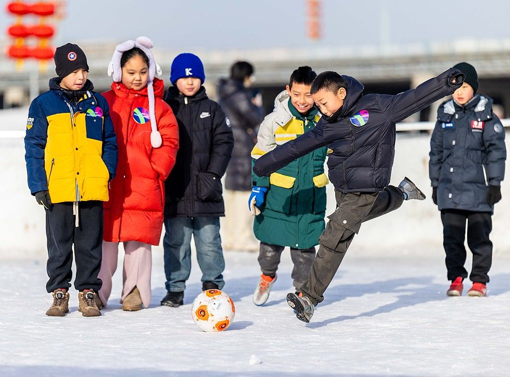 2026年1月27日,内蒙古呼和浩特青少年冰雪运动会现场,学生们进行射门大比拼比赛。