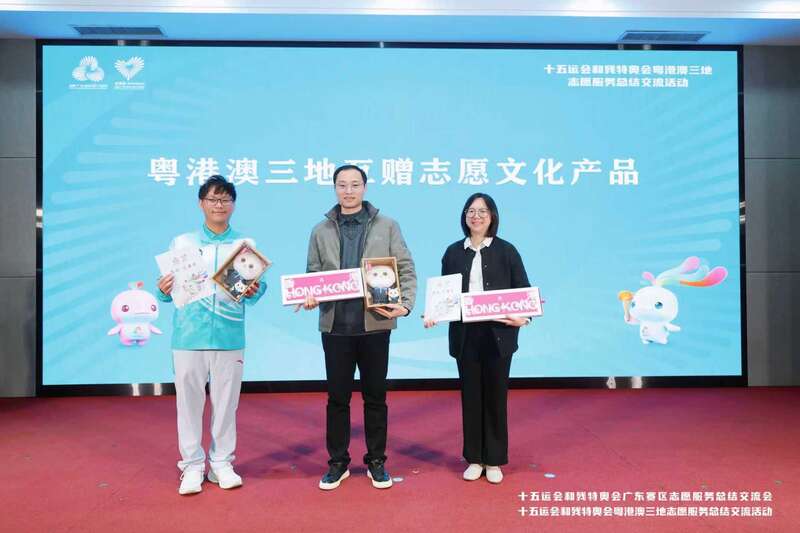 此外,粤港澳三地代表互赠蕴含本地文化特色、承载共同服务记忆的志愿文化产品。主办方设置志愿服务主题文化产品户外活动展区,汇集粤港澳三地部分承办赛区及志愿者来源高校设计创作的蕴含属地文化特色及校园文化元素的志愿服务主题文创产品,现场设置打卡区、影像展、留言墙、“实物记忆”展等,展现三地志愿服务文化的独特风貌与创新活力。