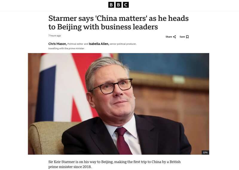 外媒:斯塔默访华,中英经贸合作前景可期