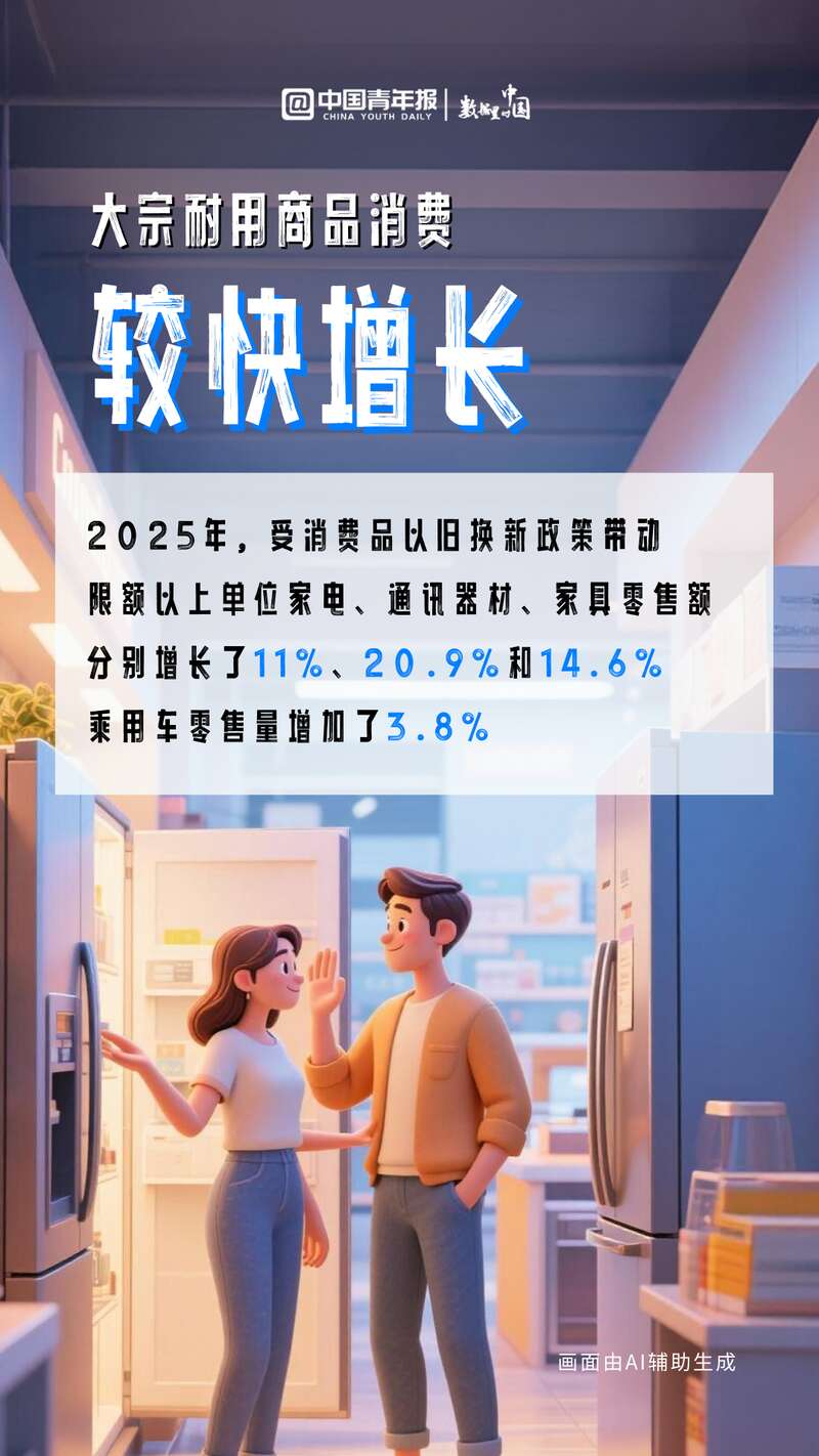 全年社会消费品零售总额首次突破50万亿元。1月26日,商务部相关负责人在国新办新闻发布会上报告了这一成就,其背后是我国消费潜力的加速释放。2025年,我国大力推进提振消费专项行动,深入实施消费品以旧换新,推动服务消费高质量发展,组织开展“购在中国”系列活动,消费总体呈现平稳发展态势,有效发挥了经济发展主引擎的作用。过去一年,你都消费了啥?