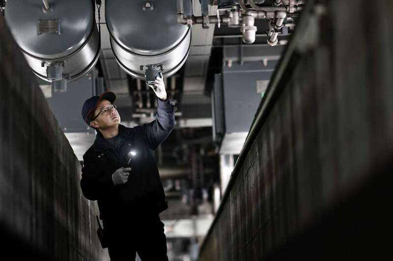 1月29日,重庆车辆段重庆北动集运用车间,检修人员对配属的CR200J动车组下部悬吊进行相关检查。据介绍,今年春运期间,重庆车辆段重庆北动集运用车间CR200J动车组图定上线18对18组,高峰上线24对18组,其中夜高峰6组。苏志刚/摄