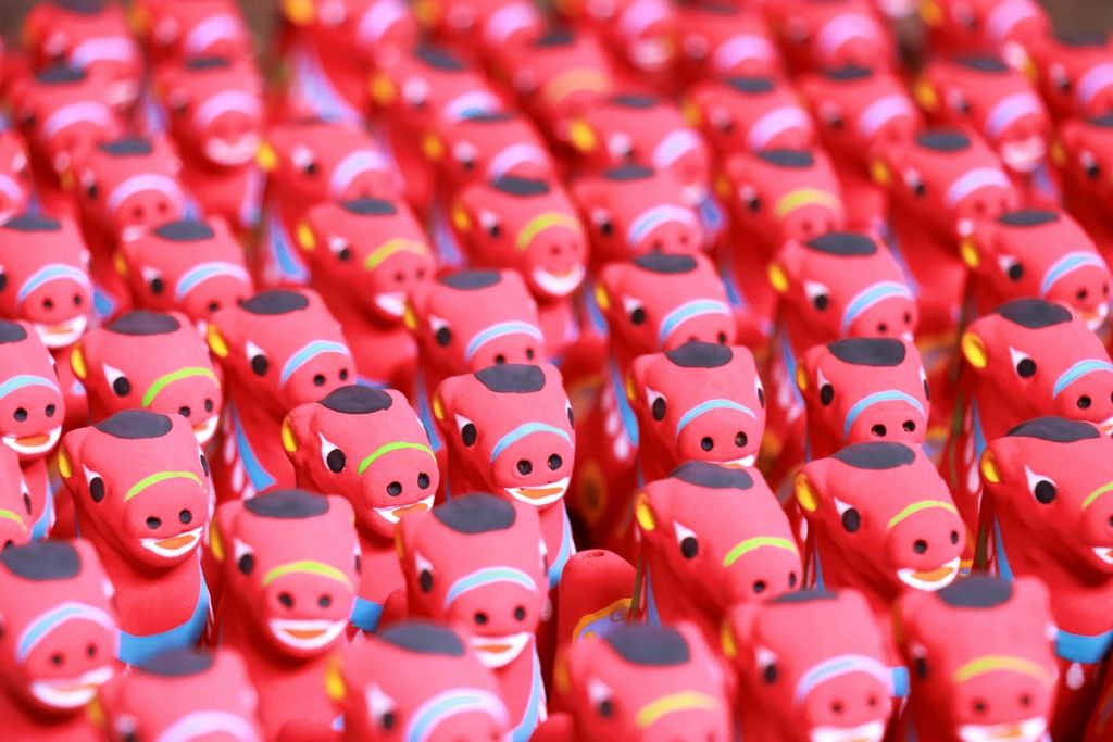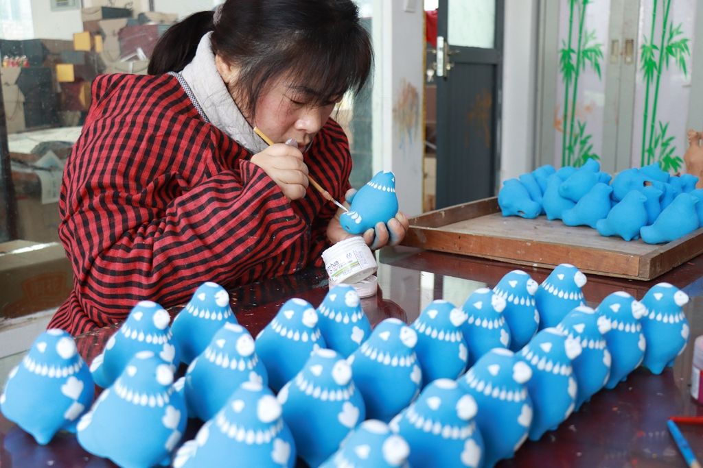 2026年1月27日,河南鹤壁,浚县杨玘屯村一家非遗工坊的泥咕咕。