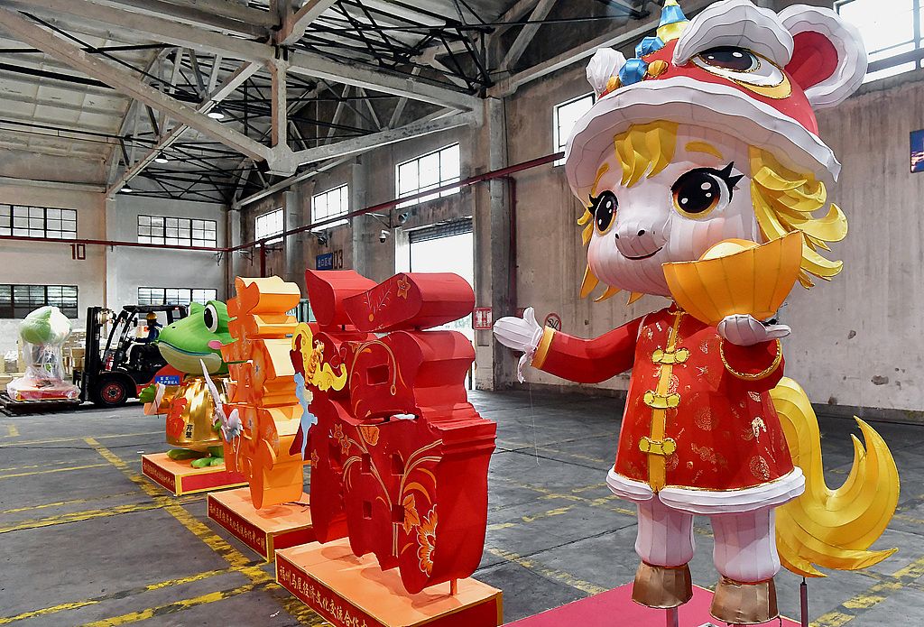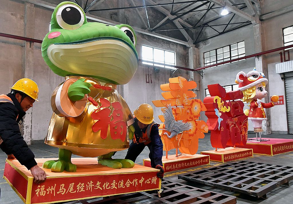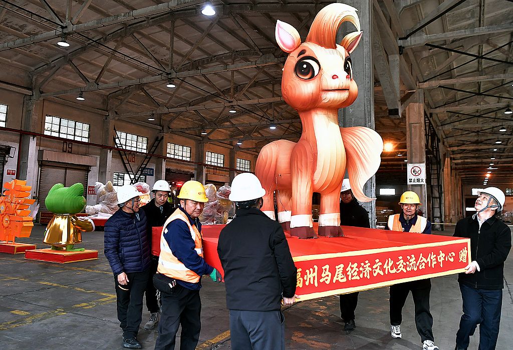 2026年1月28日,第二十四届“两马同春闹元宵”活动马尾赠马祖的28组灯组,在福州青州集装箱码头装箱,计划运往马祖,亮相当地灯会。“两马同春闹元宵”灯会起源于马尾-马祖元宵节俗,是马尾、马祖两地间开展最早且已常态化的一个双向交流活动,互赠花灯是其一大特色传统。图为马尾赠马祖的花灯。 中新社记者 张斌 摄