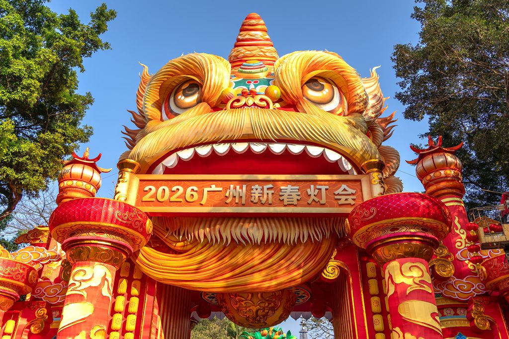 2026年1月27日,广东广州,越秀公园2026马年新春灯会的巨型醒狮彩灯灯组。