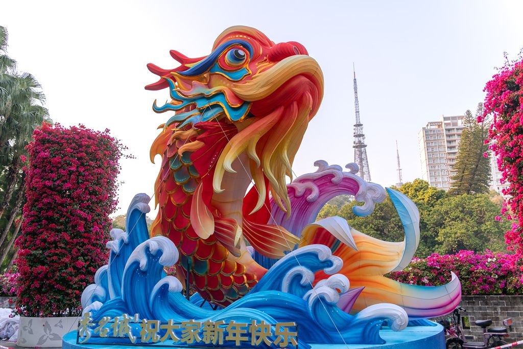 2026年1月27日,广东广州,越秀公园2026马年新春灯会的锦鲤鳌鱼花灯灯组。2026广州马年新春灯会将于1月30日正式亮灯。
