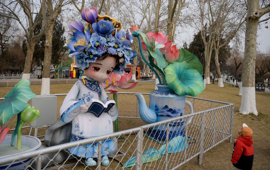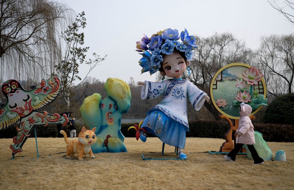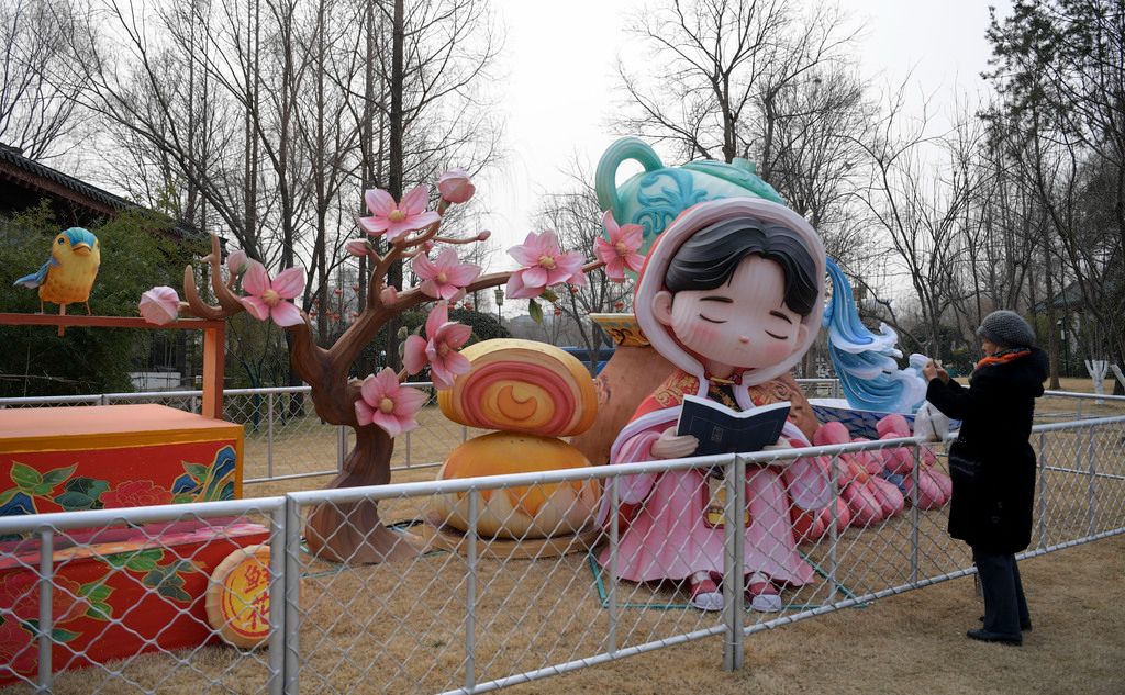 2026年1月30日,游客观赏“少女雨荷”花灯。 近日,一组组“少女雨荷”造型花灯亮相山东济南大明湖畔,萌趣可爱的形象吸引不少游客驻足观赏。 中新社记者 张勇 摄