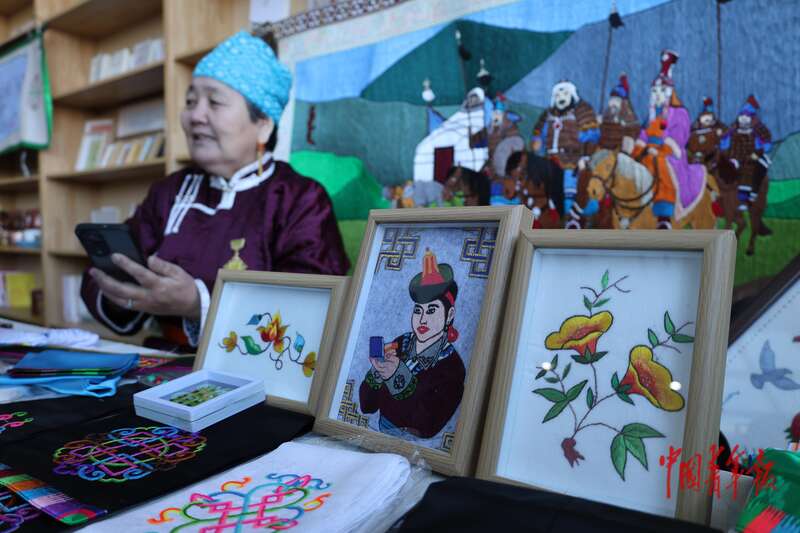 1月30日,苏尼特右旗非遗年货现场的蒙古族刺绣作品。中青报·中青网记者 石佳/摄