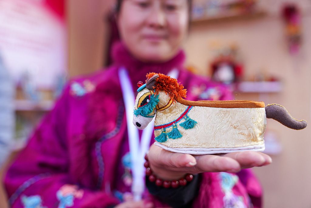 2026年1月30日,2026云南非遗过大年活动在昆明启动。春节期间,云南全省将开展涵盖“古城过大年”“非遗馆里过大年”“非遗年货购物月”等多个类型的127场活动,为市民和游客带来“可看、可玩、可品、可带走”的立体年味体验,感受“有一种叫云南的生活”。图为非遗传承人展示马头绣花鞋。 中新社记者 刘冉阳 摄