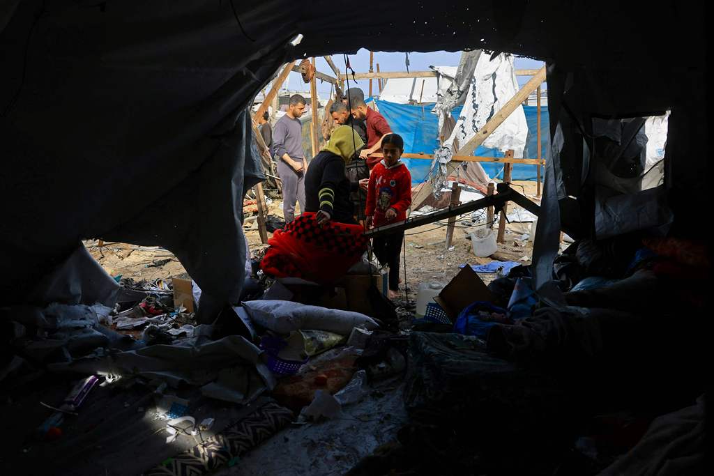 当地时间2026年1月30日,加沙地带南部汗尤尼斯马瓦西地区,在以色列袭击后,人们查看一处收容流离失所巴勒斯坦人的帐篷。美国斡旋的停火协议旨在阻止以色列和哈马斯因哈马斯2023年10月的袭击而引发的冲突,尽管双方都指责对方一再违反协议,但停火已持续三个多月。