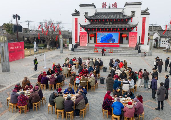 2026年1月31日,江苏省淮安市,居民与游客在洪泽区蒋坝镇年猪宴上品尝美味。春节临近,淮安市洪泽区蒋坝镇举办年猪宴活动,喜迎新春佳节。
