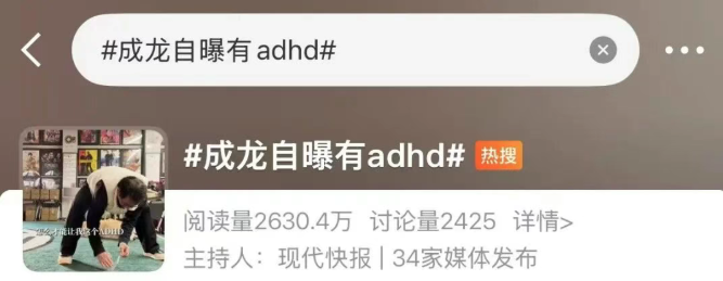 话题#成龙自曝有ADHD#随之冲上热搜