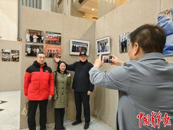 援青医生在清华大学展出的《生命之光》“包虫病清灭计划”大型影像史料展上合影留念。中青报·中青网记者 李怡蒙/摄
