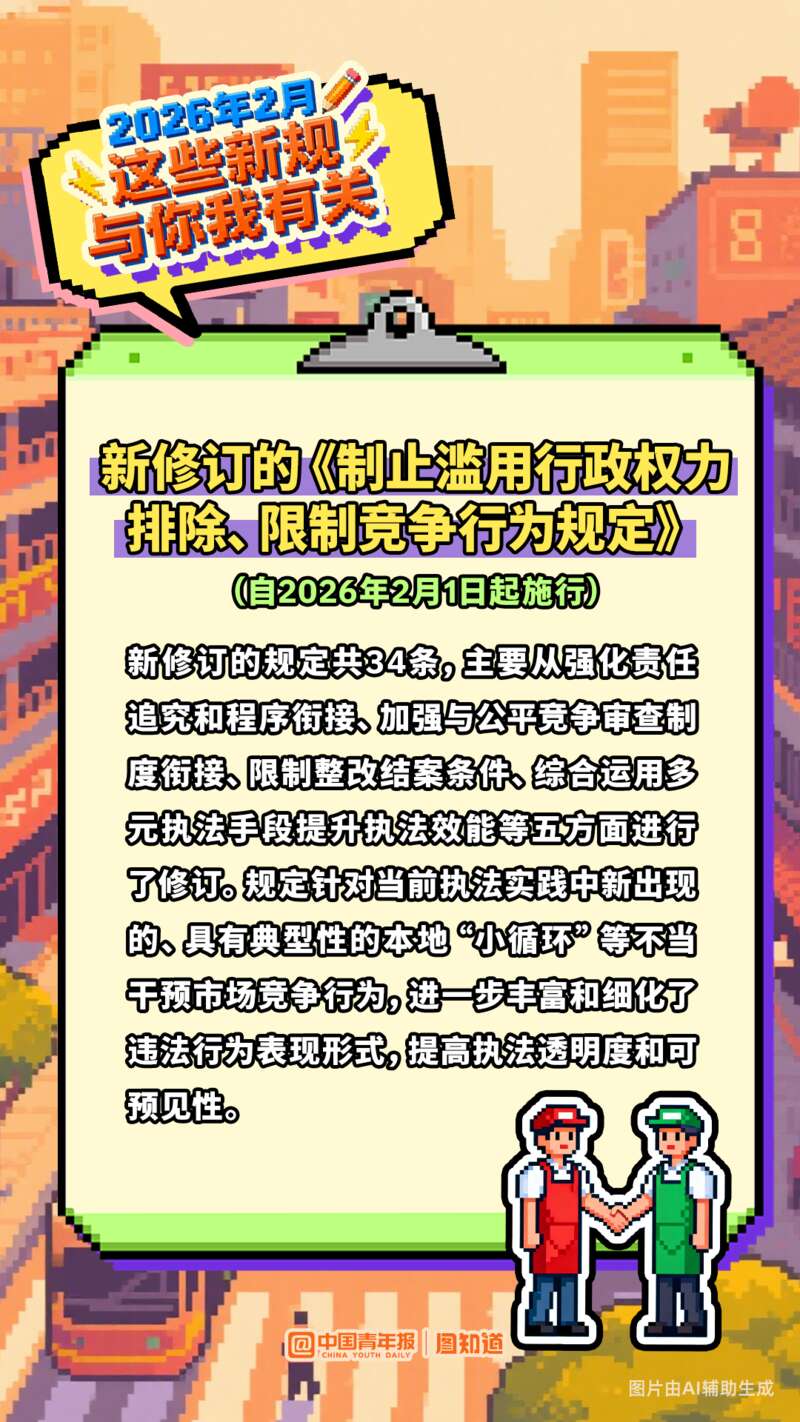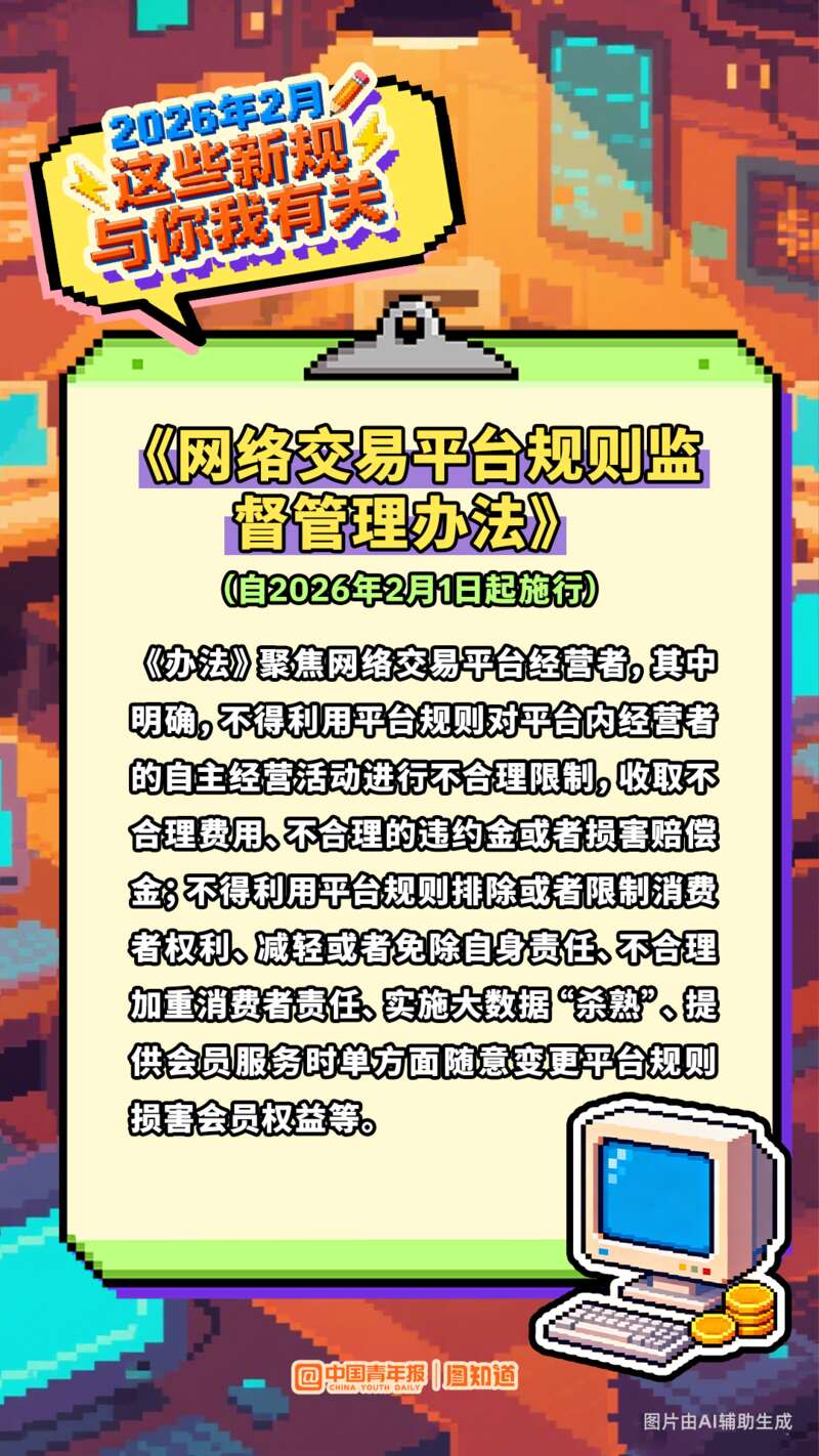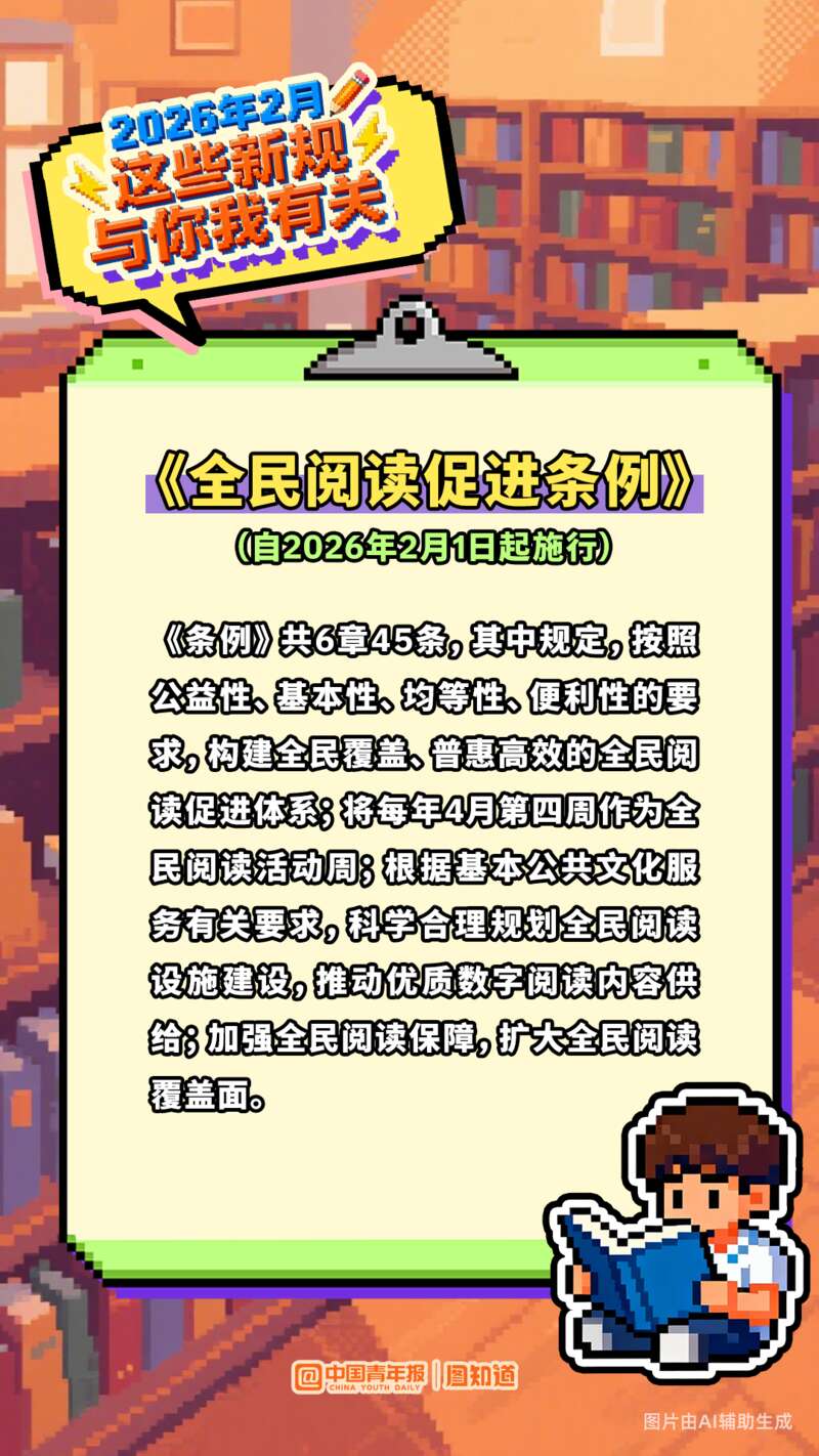 每年4月第四周将为全民阅读活动周,出台新规防范和整治拒收现金行为,明确直播间运营者、直播营销人员不得进行虚假宣传……2026年2月,这些新规与你我有关,多图速览。