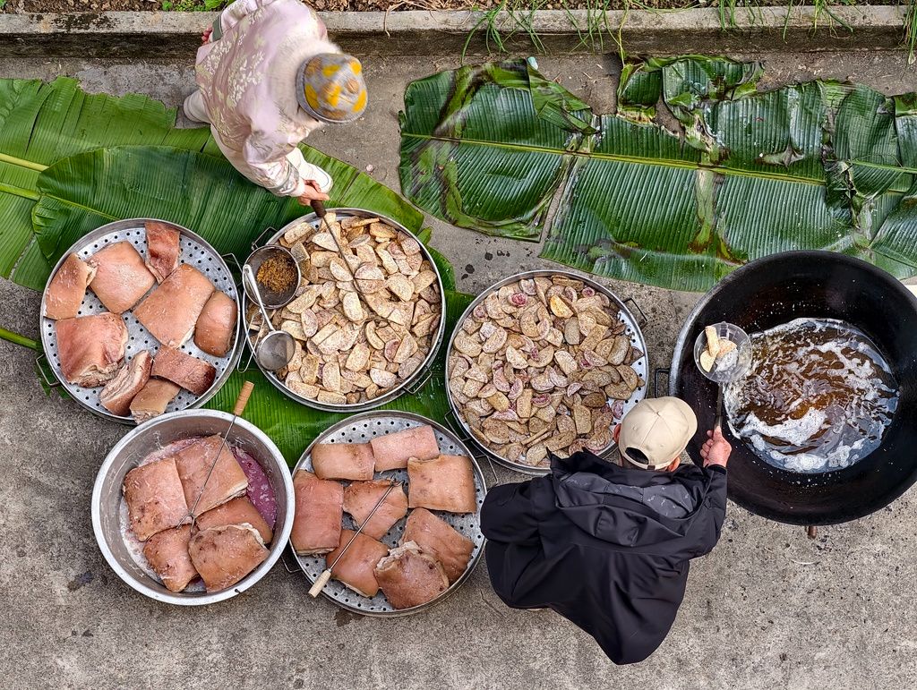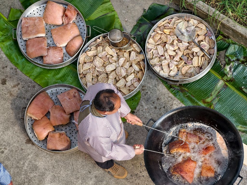 2026年1月31日,在广西荔浦荔城镇兴宁巷,民众在制作“荔浦扣肉”。
