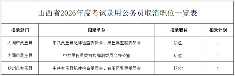 附件:山西省2026年度考试录用公务员取消职位一览表