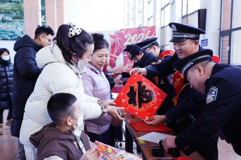 候车室内,齐齐哈尔铁路公安处联合车站开展宣传活动。民警为旅客送上新春福字,也将实用的安全知识传递给大家。列车上,民警通过案例讲解,提醒旅客遵守法规、文明乘车。安检口边,民警展示各类危险品,并讲解哪些物品禁止携带上车。
