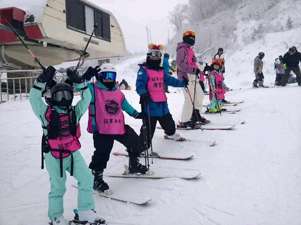 1月3日,李洪川的俱乐部开设青少年滑雪营,几名小朋友在雪场合影。受访者供图