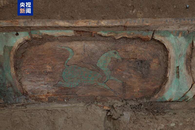 新疆吐鲁番巴达木东墓群,年代属于晋唐时期。2025年考古发掘的一座唐代墓葬,内部陈设彩绘木榻、木棺与木骨屏风,这一组合为唐墓中罕见的实物原型。木榻与《北齐校书图》中所绘木榻极为相似,考古成果让古画场景照进现实。塔式结构的棺座,自下而上由弧形壸门、叠涩、方形壸门组成,彩绘12只带翼瑞兽,依据其外形,大致区分为翼马、翼狮、翼虎等,线条流畅、画工精湛、色彩艳丽,多件器物尚属首次发现,再现唐代各民族交融共生的历史。
