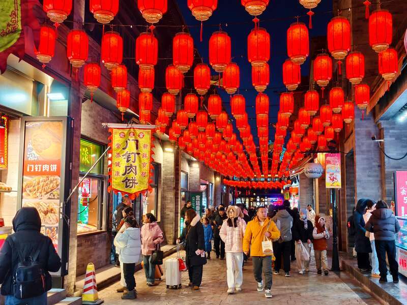 Beijing’s historic Qianmen Street has illuminated the winter night with a spectacular array of crimson lanterns and lively fairs, turning the ancient commercial district into a vibrant stage for cultural heritage and holiday joy. Visiting on February 2, from the retro trams trundling past the Zhengyang Bridge to the traditional sugar figurines and mouth-watering snacks in Xianyukou Hutong, visitors like Ms. Liu find that the dazzling interplay of phoenix lanterns and ancient architecture not only provides a stunning backdrop for photos but also immerses them in the authentic "flavor" of the Lunar New Year.(Photo by Zhang Jiao/China Youth Daily)