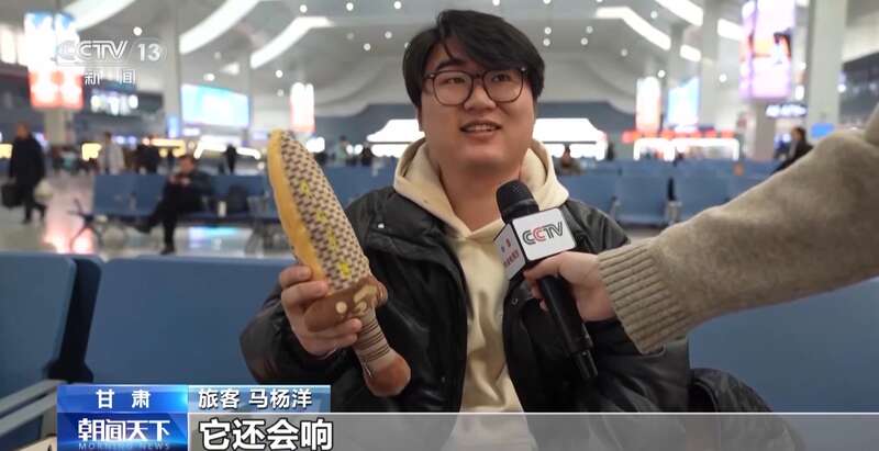 旅客 马杨洋:带了一些长沙那边的茶饼给老人尝尝,还有越王勾践剑的一个文创,它还会响。