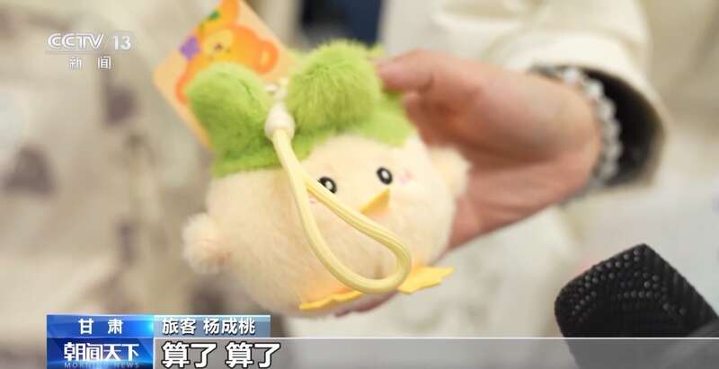 旅客 杨成桃:我买的是武汉的“蒜鸟”,心情烦躁可以捏一下,感觉挺有趣的。