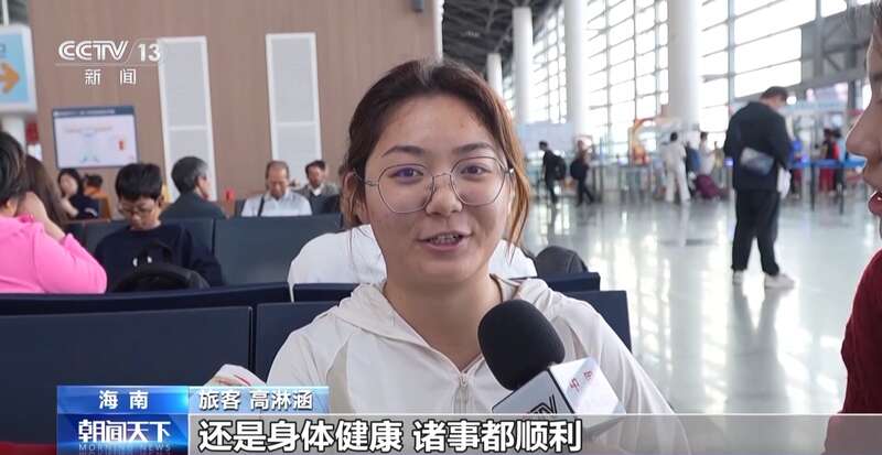 旅客 会欣语:我就是回家的礼物,我爸妈期盼我回家好久了。我是学飞机维修的,一个省赛的项目获得了二等奖,这也算我回家的一个礼物。