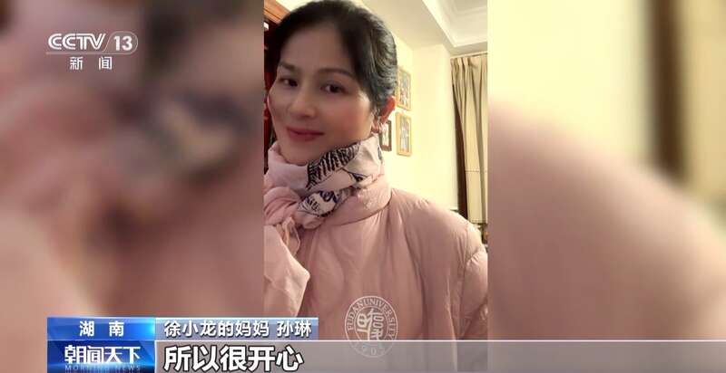 徐小龙的妈妈 孙琳:孩子给我带了他学校的纪念品,他现在还在复旦大学读研,回来给我带了一件过冬的棉袄,上面有校徽,所以很开心。他在外读书应该有五年了,每次回来只要看到他开心的笑容,我就很开心了。