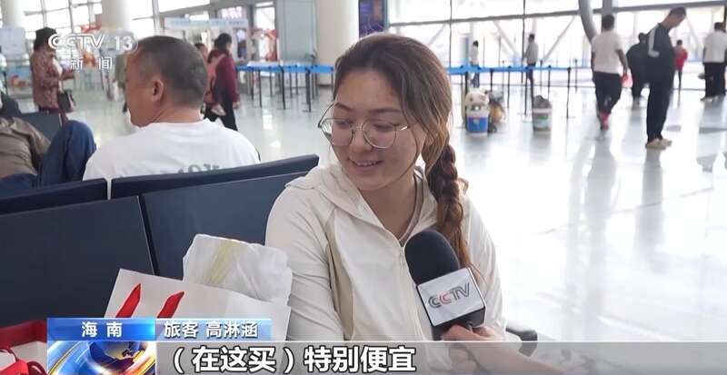 旅客 高淋涵:我就帮我妈妈带了几个化妆品,在海南买特别便宜。